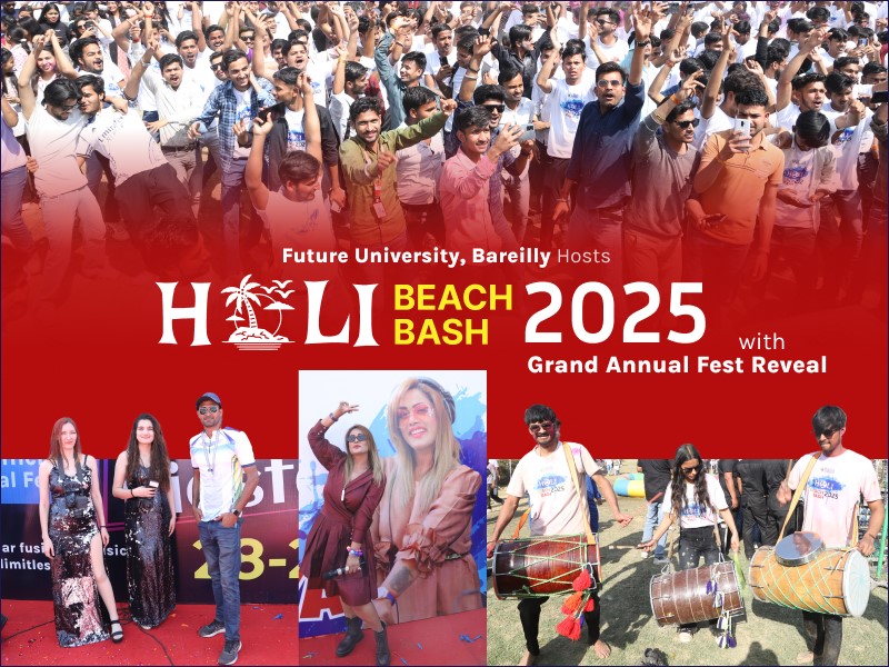 Bareilly, March 18, 2025 – Future University, India’s First AI-Enabled New Age Innovative University, recently set the stage for an unforgettable celebration with Holi Beach Bash 2025. Held at the university’s picturesque Golf Course, the Goa-themed Holi celebration brought together students, faculty, and staff for a day filled with colors, music, and festive cheer. The event reinforced Future University’s vision of providing students with a holistic and immersive campus experience, aligning perfectly with the National Education Policy (NEP) 2020.