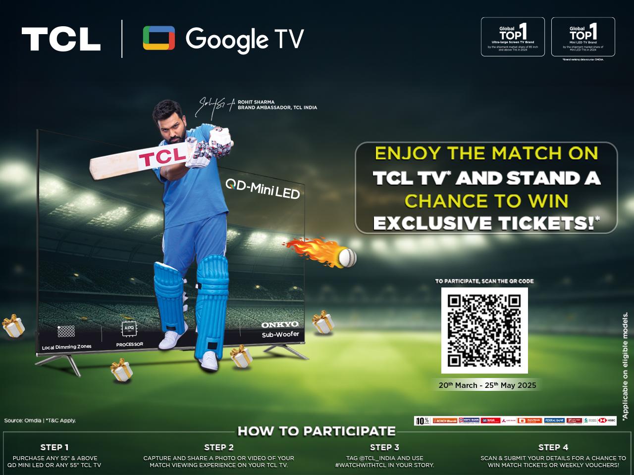 To participate in the contest, the customers who purchase TCL’s 55” or above QD-Mini LED or 55”+ TCL TV will have to capture and share their photo or video, showcasing their match-viewing experience on their TCL TV. The participating customers will have to tag @tcl_india on Instagram or @TCL Electronics (IN) on Facebook and use #WatchWithTCL in their story; and scan and submit their details to get a chance to win exciting rewards.