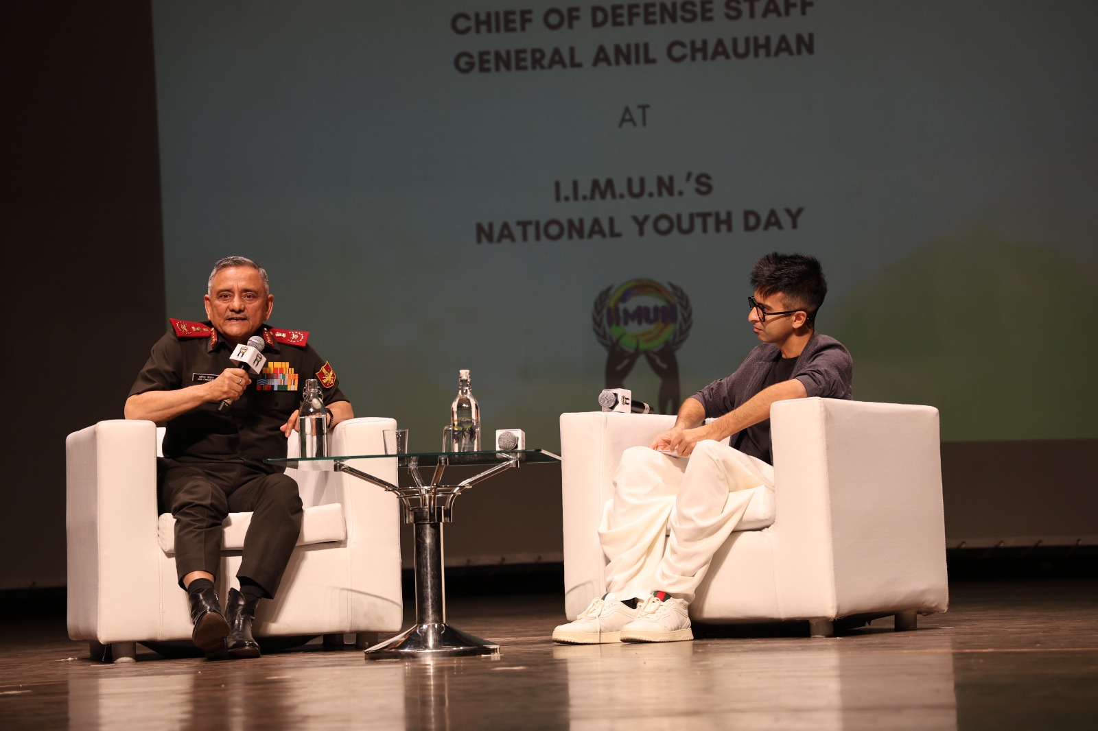 Speaking at the event, Gen Anil Chauhan recalled Swami Vivekananda’s teaching and said “The youth of our country are the torchbearers of tomorrow, India’s youth can truly unite the world and I commend the work done by I.I.M.U.N. in that direction”. Apart from the speech he had a moderated conversation with the founder – Rishabh Shah and thereafter took questions from the students.